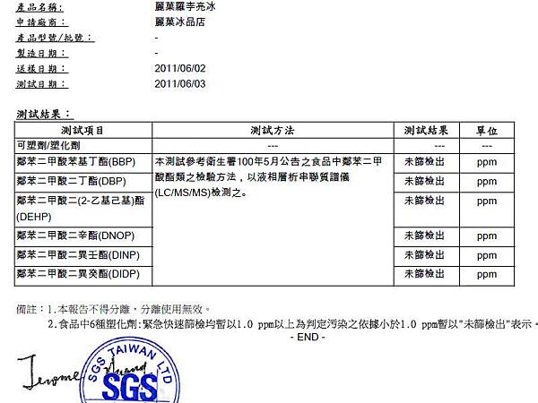 這一陣子引起大波瀾的塑化劑,讓食品界人心惶惶,什麼可以吃,什麼又不能吃,每個人的心中都充滿了問號,為了給大家一個安全的保障,我們的『羅李亮冰』也送去驗,SGS和食品工業研究所是目前台灣有公信力的檢驗機構,等待檢驗的物品大排長龍,等了十幾天總算是等到報告了~~